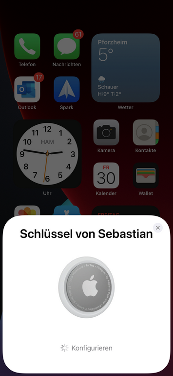 Im Anschluss wird der AirTag konfiguriert, was bei mir etwa 10 Sekunden gedauert hat.
