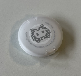 Bei der Bestellung konnte man noch eine kostenlose Gravur auswählen. Hierfür stehen zahlreiche Emojis aber auch normale Buchstaben zur Verfügung. Diese werden dann auf der weißen Seite des AirTags aufgedruckt. Das folgende Bild zeigt meinen personalisierten AirTag.