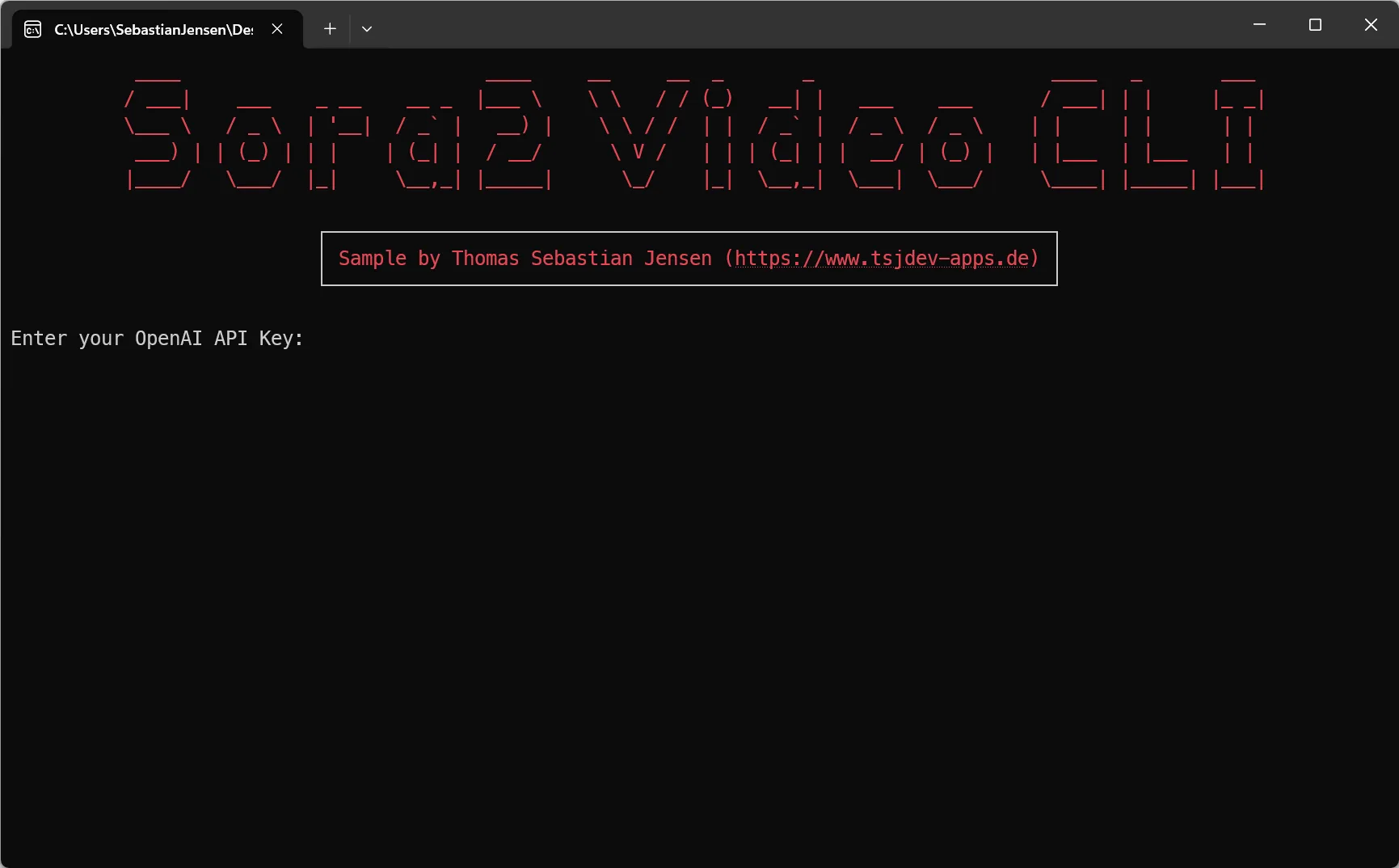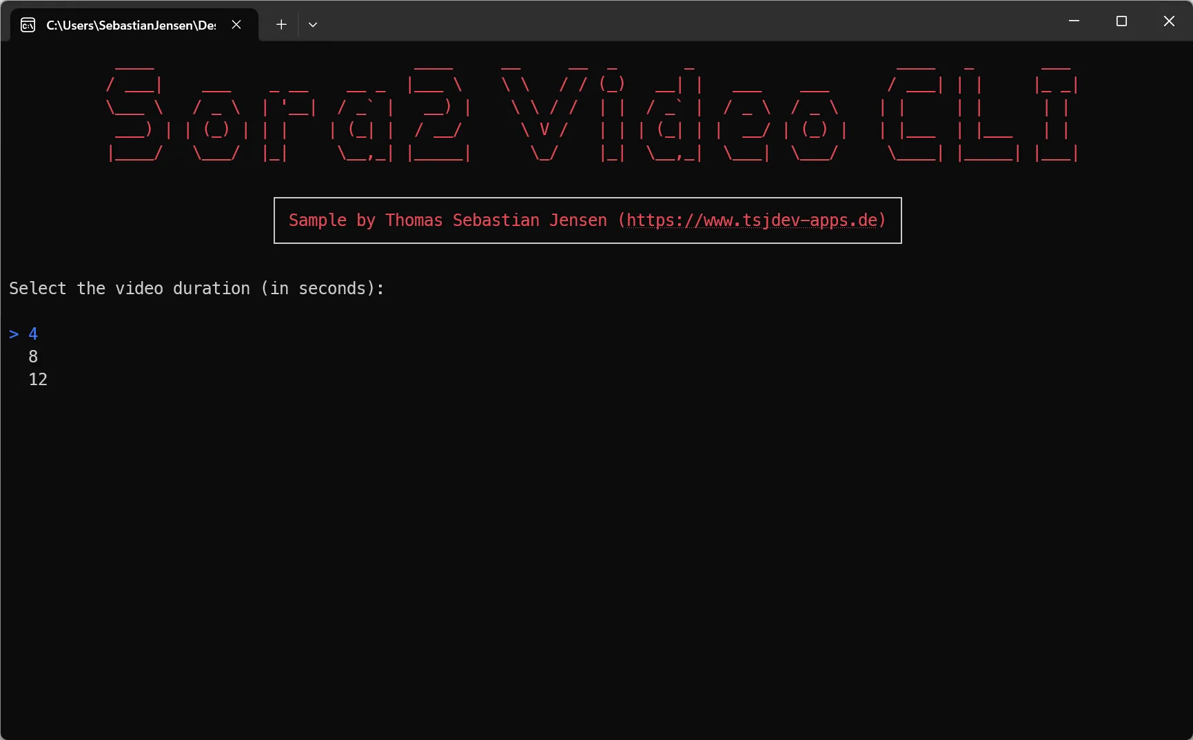 Program.cs— Hauptlogik und BenutzerflussConsoleService.cs— Helfer für Eingabe und formatierte KonsolenausgabeVideoApiClient.cs— Kommuniziert mit der OpenAI Video-API