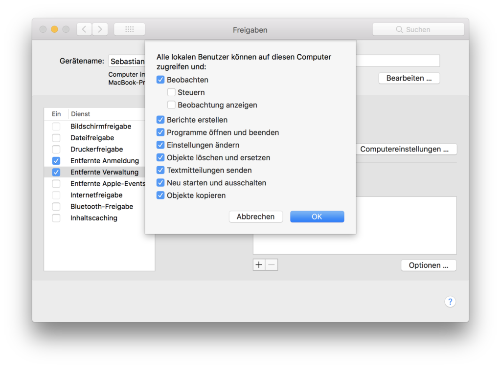 Nun kann man seinen Mac bequem von einem anderen Rechner aus fernsteuern.