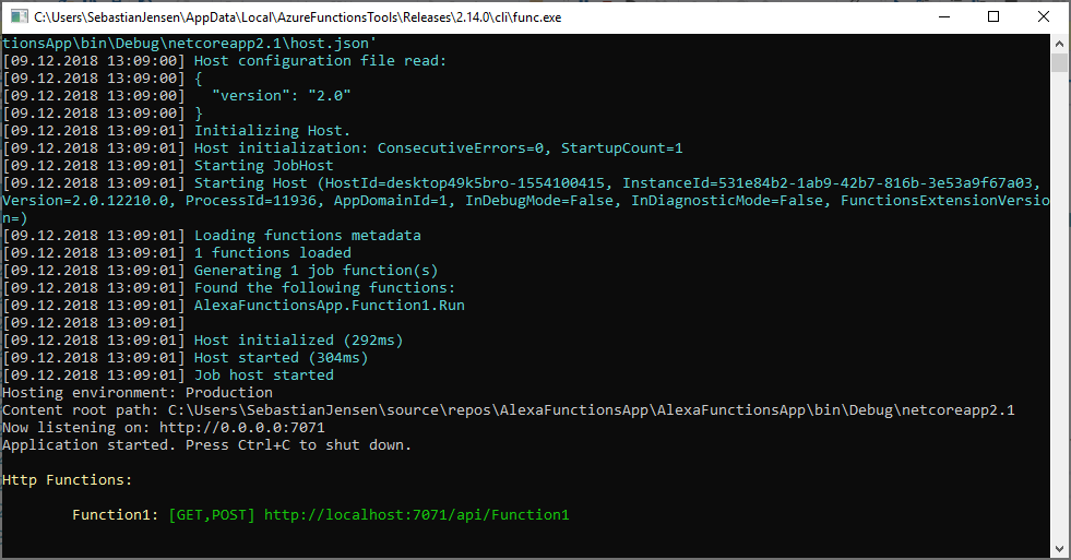Als API-Beispiel verwende ich eine Azure Function, welche unter http://localhost:7071/api/Function1 erreichbar ist.