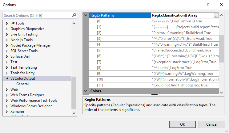 Darüber hinaus lassen sich in den Einstellungen weitere eigene Patterns erstellen, so dass man seine eigenen Debug-Ausgaben zum Beispiel in Lila dargestellt bekommt. Dies hat den Vorteil, dass man wichtige Nachrichten im Output-Window direkt wahrnimmt und entsprechend als Entwickler darauf reagieren kann.